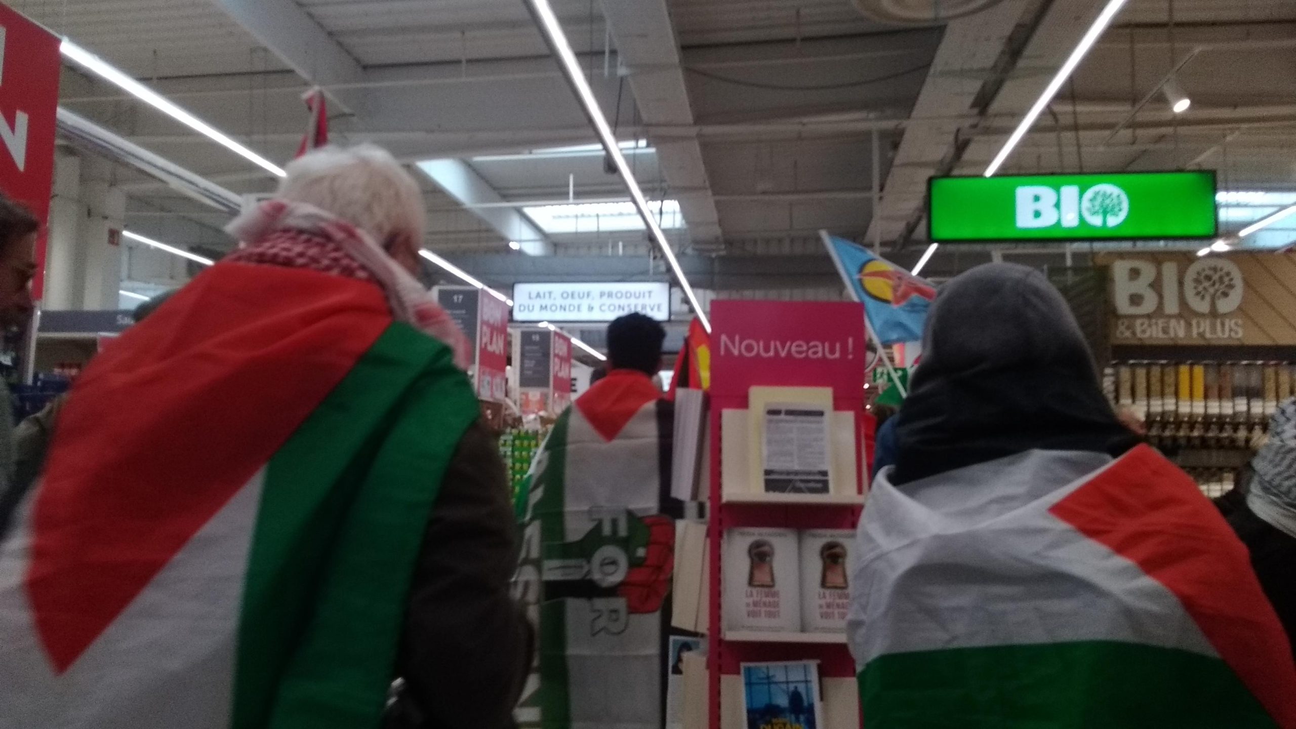 L’UL CNT Rennes a par­ti­ci­pé à l’action BDSNote de bas de page numé­ro 1 sur le Carrefour de Cesson-Sévigné, dans le cadre de la cam­pagne BDS. BDS ou Boycott, Désinvestissement, Sanction est un réseau de plus de 170 orga­ni­sa­tions qui, par le monde, dénonce depuis 2005 les inté­rêts des entre­prises, des com­merces, des uni­ver­si­tés à coopé­rer avec Israël dans son exploi­ta­tion des­truc­trice.